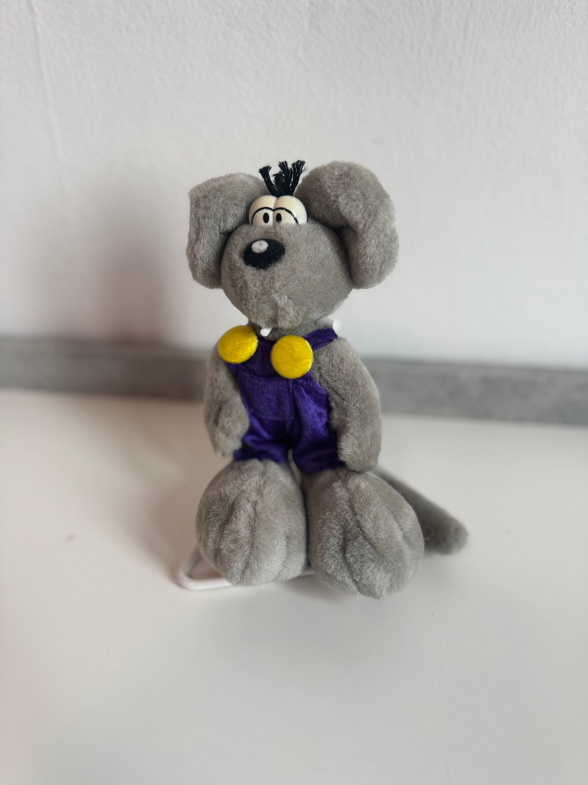 Diddl Grau mit Blauer Latzhose und gelben Knöpfen klein
