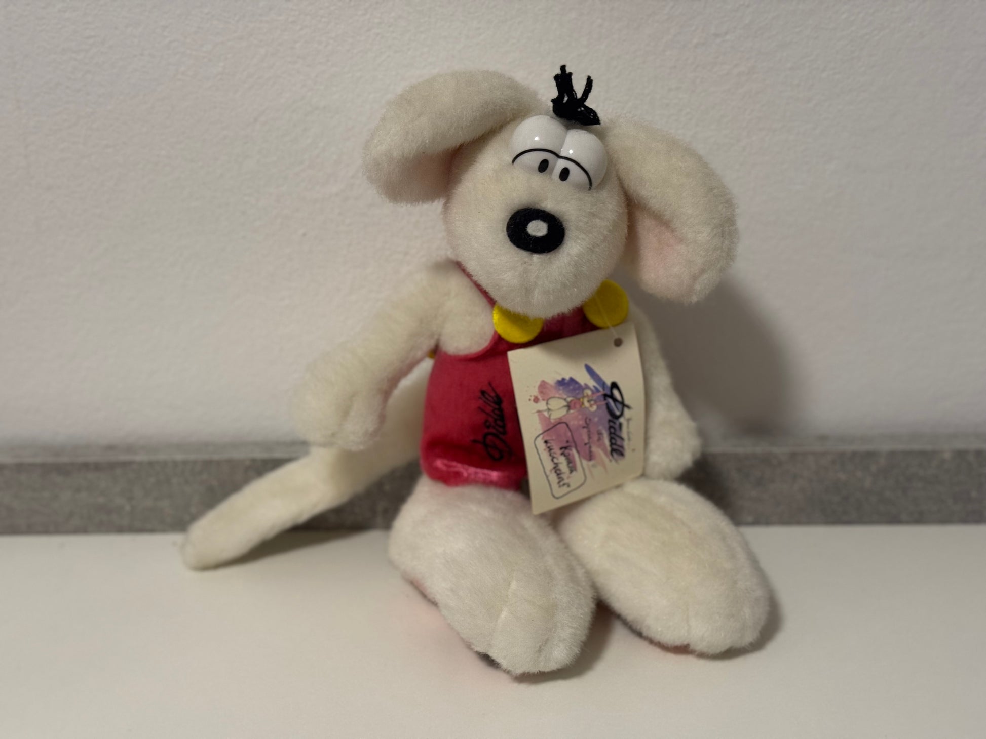 Besonders hervorzuheben ist das süße Etikett, das der Figur einen speziellen Charme verleiht. Dieses detailverliebte Accessoire macht sie nicht nur zu einem tollen Blickfang, sondern bietet auch Möglichkeiten für kleine Nachrichten oder persönliche Widmungen. Egal, ob als Dekoration, zum Spielen oder als treuer Begleiter – die Diddl Figur ist vielseitig einsetzbar.